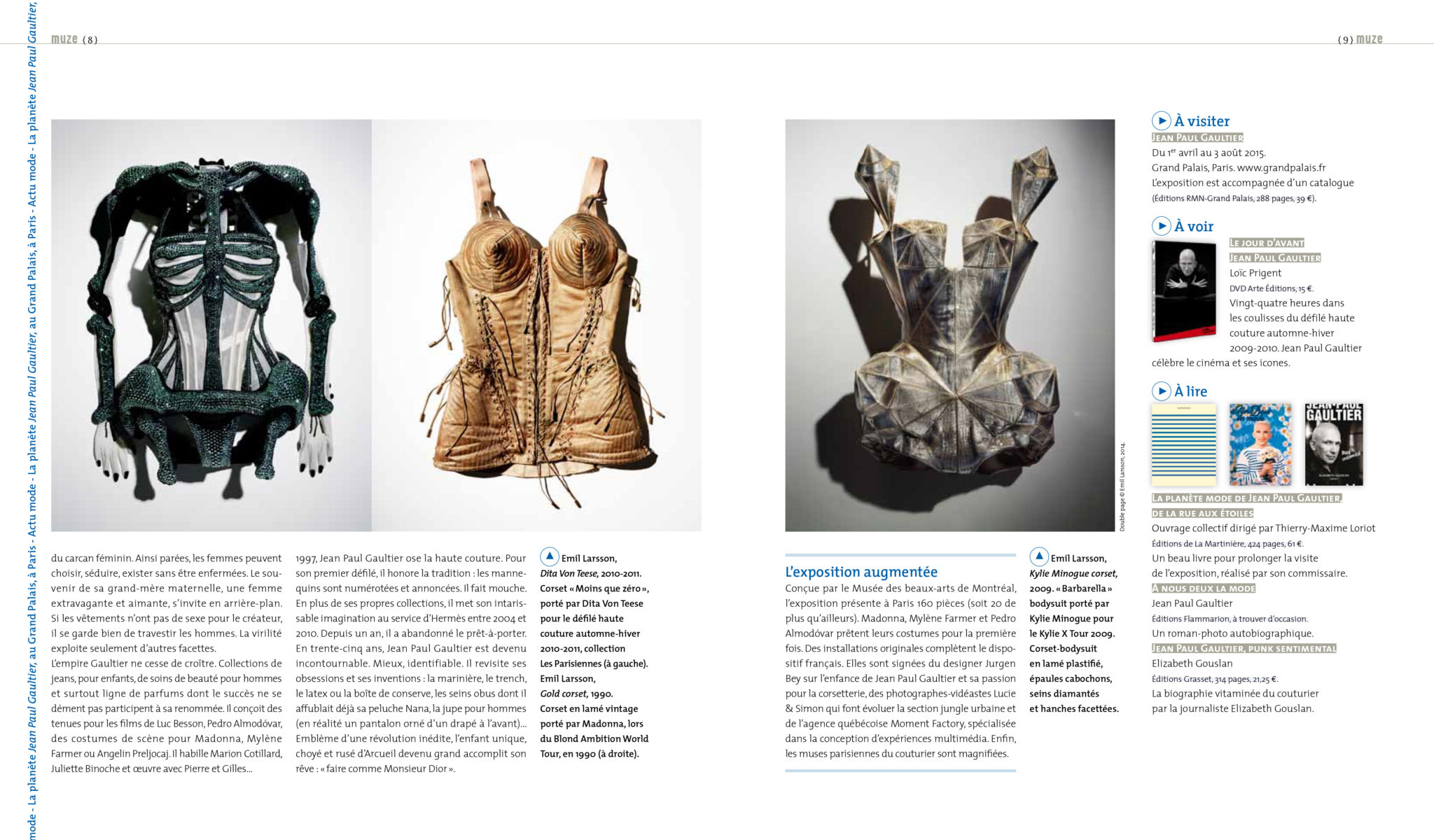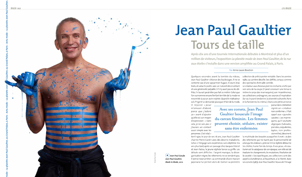 Pour ce numéro de la revue muze, j’ai écrit l’article du dossier actu Jean Paul Gaultier, tours de taille et le dossier société consacré à la médecine, ainsi que l’interview de la lectrice de muze dont la nouvelle est publiée dans le dossier atelier d’écriture. Un numéro en vente en librairie et en kiosque le 12 mars 2015.